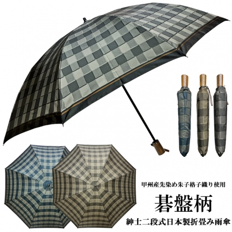 甲州産先染め生地使用 碁盤柄紳士二段式日本製折り畳み雨傘