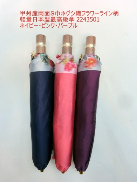 通年新作)雨傘・折畳傘−婦人 甲州産両面S巾ホグシ織フラワーライン柄軽量日本製最高級傘