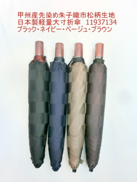 通年新作)雨傘・折畳傘-紳士 日本製甲州産先染朱子格子生地市松柄軽量大寸傘
