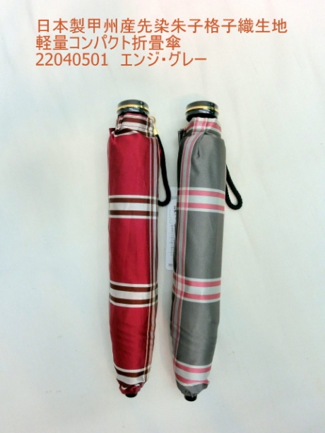 通年新作)雨傘・折畳傘-婦人 日本製甲州産先染朱子格子織生地軽量コンパクト折畳傘