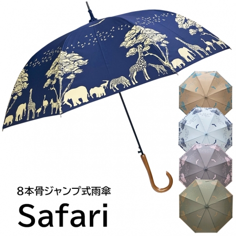 雨傘 長傘 レディゾウ・シマウマ・キリン・サイ・ダチョウの住むサファリ柄ジャンプ式雨傘