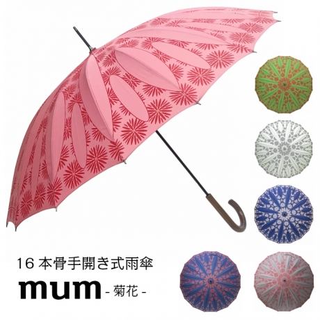 通年新作商品)雨傘・長傘-婦人 16本骨菊の花型手開傘