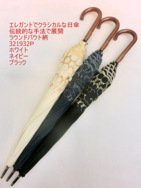 2019春夏新作)日傘長傘 熱い日でも快適♪ポリ綿混生地ロールカットレース柄刺繍入りパラソル