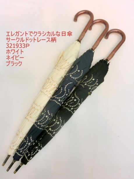 2019春夏新作)日傘長傘 紫外線対策に◎サークルドットレース柄手開きパラソル(日傘)
