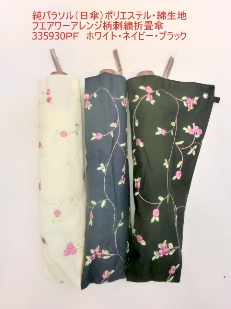 2019春夏新作)日傘・折畳傘-婦人 純パラソル(日傘)ポリ綿混生地フラワーアレンジ柄刺繍折傘