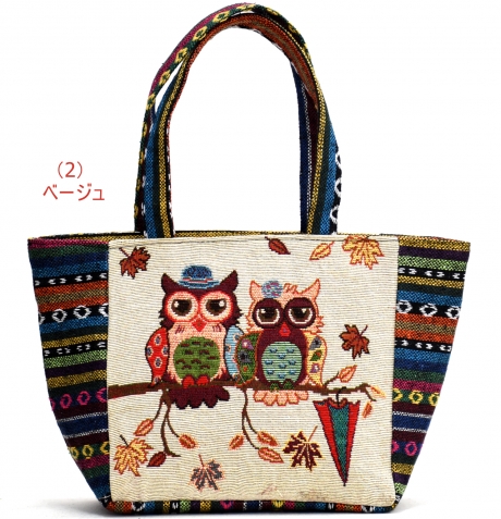 お洒落で可愛らしいフクロウ柄のゴブランバッグです。