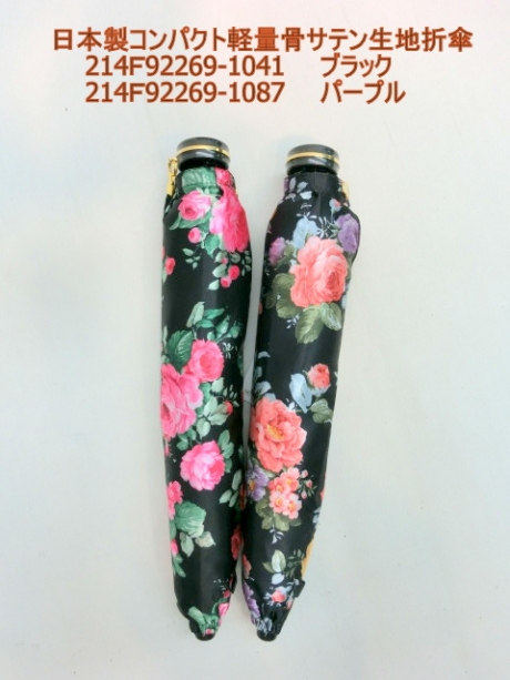2019通年新作)雨傘・折畳傘ー婦人 つやつやサテン花柄転写プリント日本製軽量コンパクト折傘