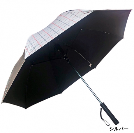 USB充電式扇風機付き晴雨兼用手開き傘・格子柄